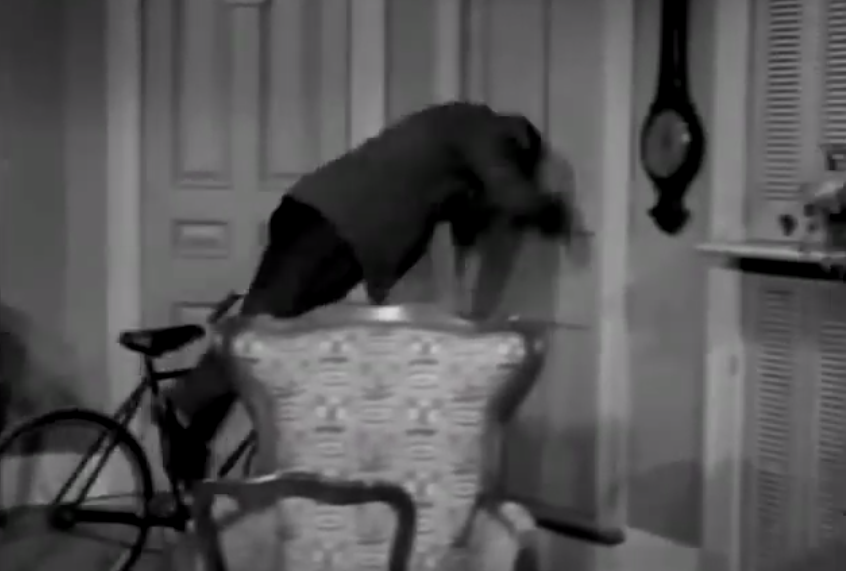 He decides to try his act again and see if he can pull himself together for the show. I don’t know what he thought would happen when he got on his bicycle in a Manhattan 1-BR apartment, but there’s no fucking place to go and yeah shocker he crashes through the kitchen door.