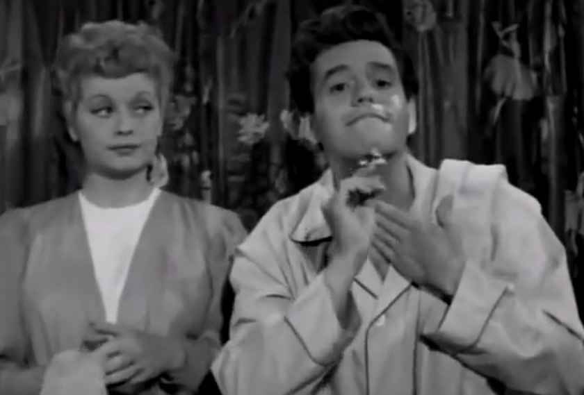 While Ricky shaves, Lucy tells him he should be on TV, and that he really needs a girl in his act.