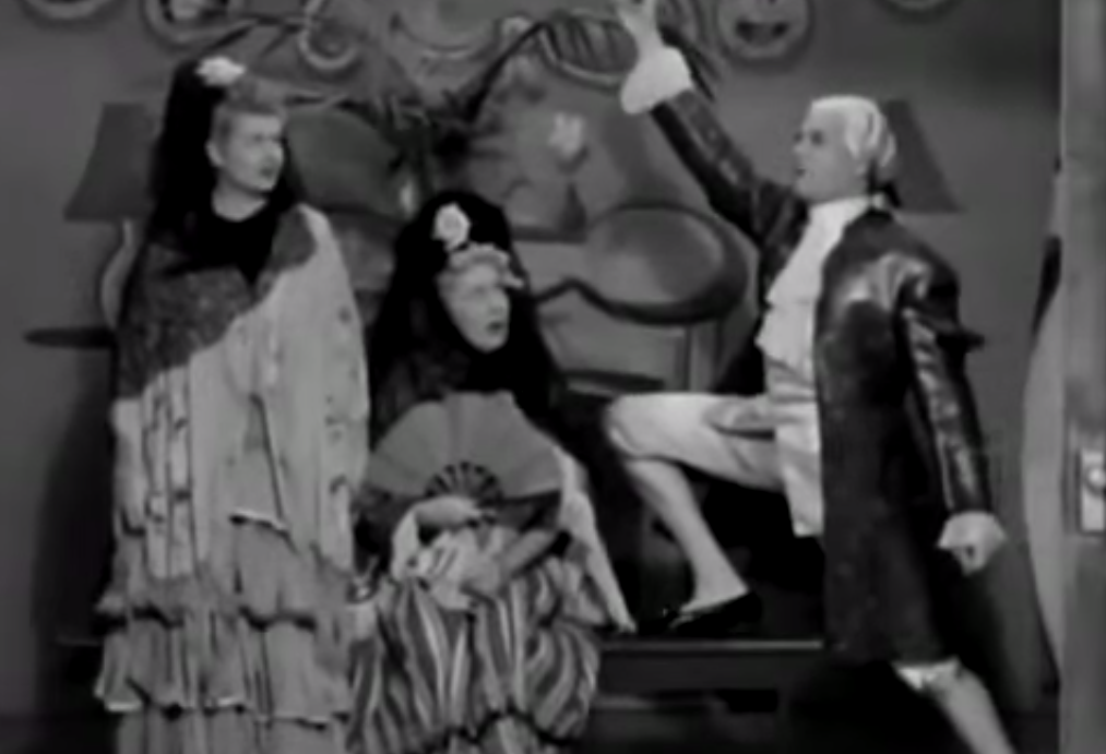So now they start the whole play over again, but in Spanish style. And Ricky comes in dressed like a French tart from Scarlet Pimpernel.