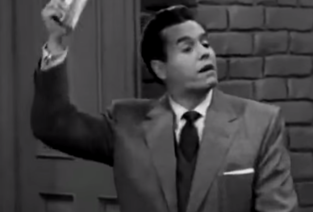 Ethel enters, ready to rehearse, in a Spanish señora costume she designed. Hand it to Ethel, girl can design costumes. Remember her work in the seance episode? She’s found her niche in culturally insensitive attire.