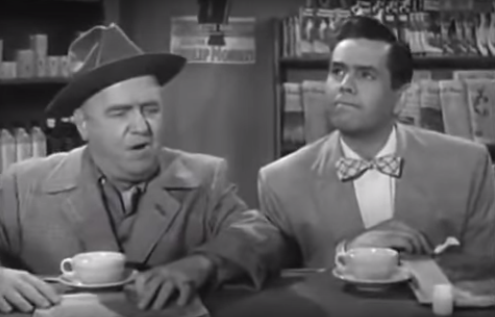 The next day in the cigarette shrine they called a “drugstore” back then, Ricky thinks up a great idea: he and Fred should “accidentally” make up fake gossip about the hot blonde in the building, but say it in their sleep, so they’re technically not gossiping. The girls won’t be able to resist telling each other.