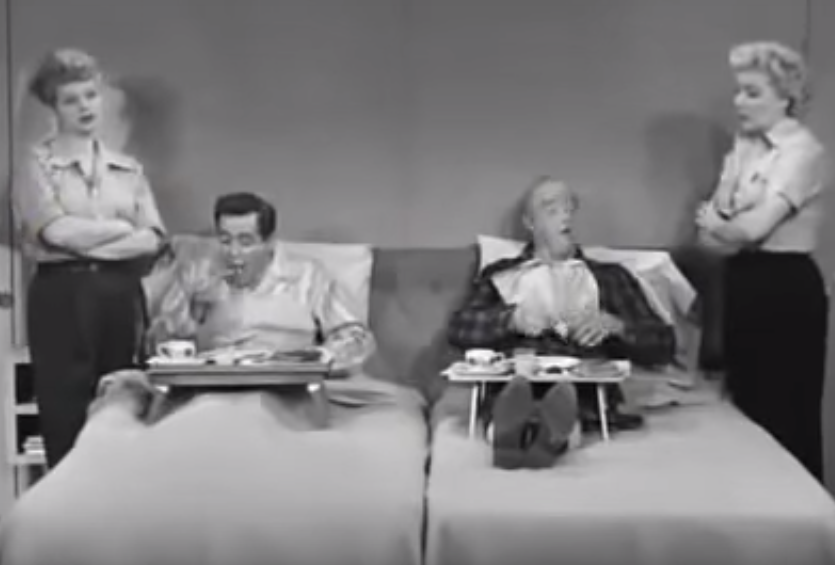 Ricky demands a twin bed because Lucy watches him sleep like this every single night.