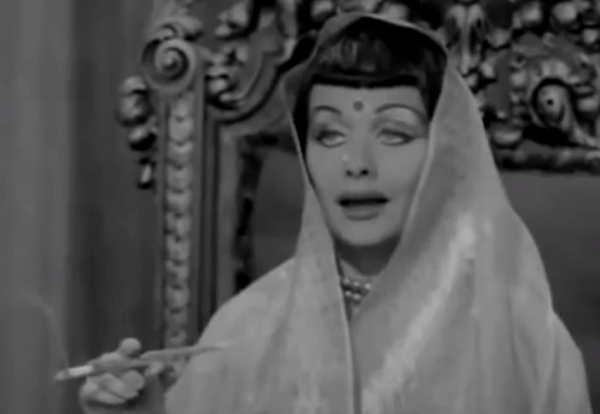 Lucy then decides to have fake royalty visit Ricky. She lands on Scheherazade, the Maharincess of Franistan.