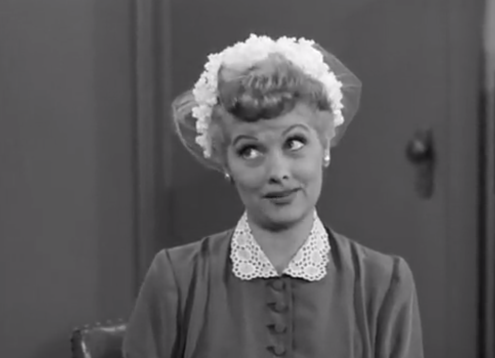 Lucy comes in wearing a hat that looks like a wedding veil to visit Freddy Filmore. Like she’s gonna offer him prima nocta for the answers or something.